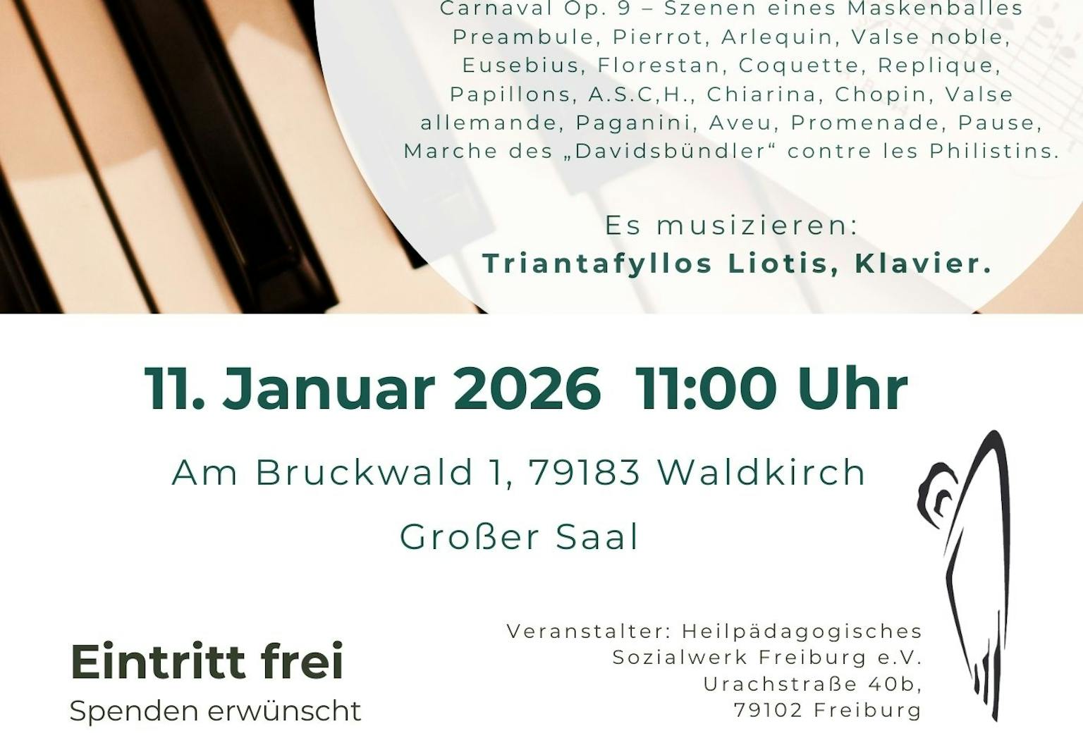 Am Sonntag, den 11. Januar 2026 um 11:00 Uhr laden wir Sie wieder herzlich zu einer besonderen Konzert-Matinee in den Festsaal Am Bruckwald in Waldkirch ein.
