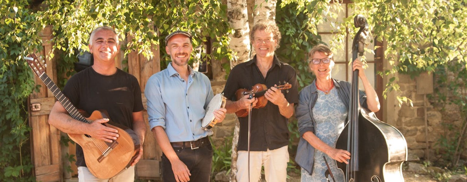Mit Geige, Gitarre, Mandoline, Percussion und Kontrabass entsteht ein eigener,