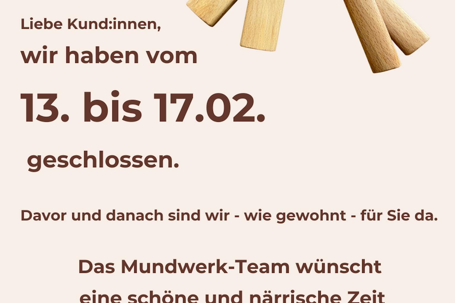 Wir haben über Fasnet geschlossen: vom 13.02.-17.02.