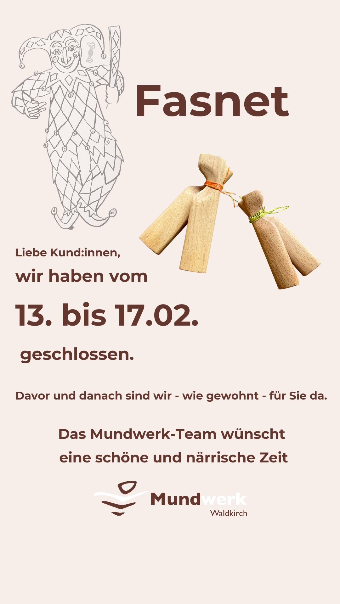 Wir haben über Fasnet geschlossen: vom 13.02.-17.02.